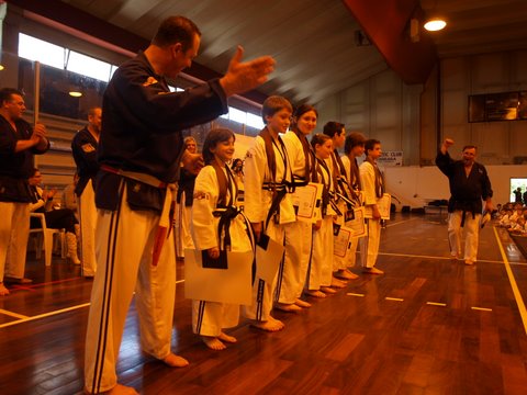 Al termine delle lezioni Soke R.Clark ha consegnato i diplomi alle nuove Black Belt, ai 2°, 3° e 4°dan e ai giovani Gold Tab, tutti quanti coinvolti da una crescente emozione. Veramente una gran soddisfazione per tutto il Team Mancini che ancora riceveva da tutti i complimenti per la perfetta organizzazione e per la bell’atmosfera che ha accompagnato lo Stage e i giorni trascorsi insieme.